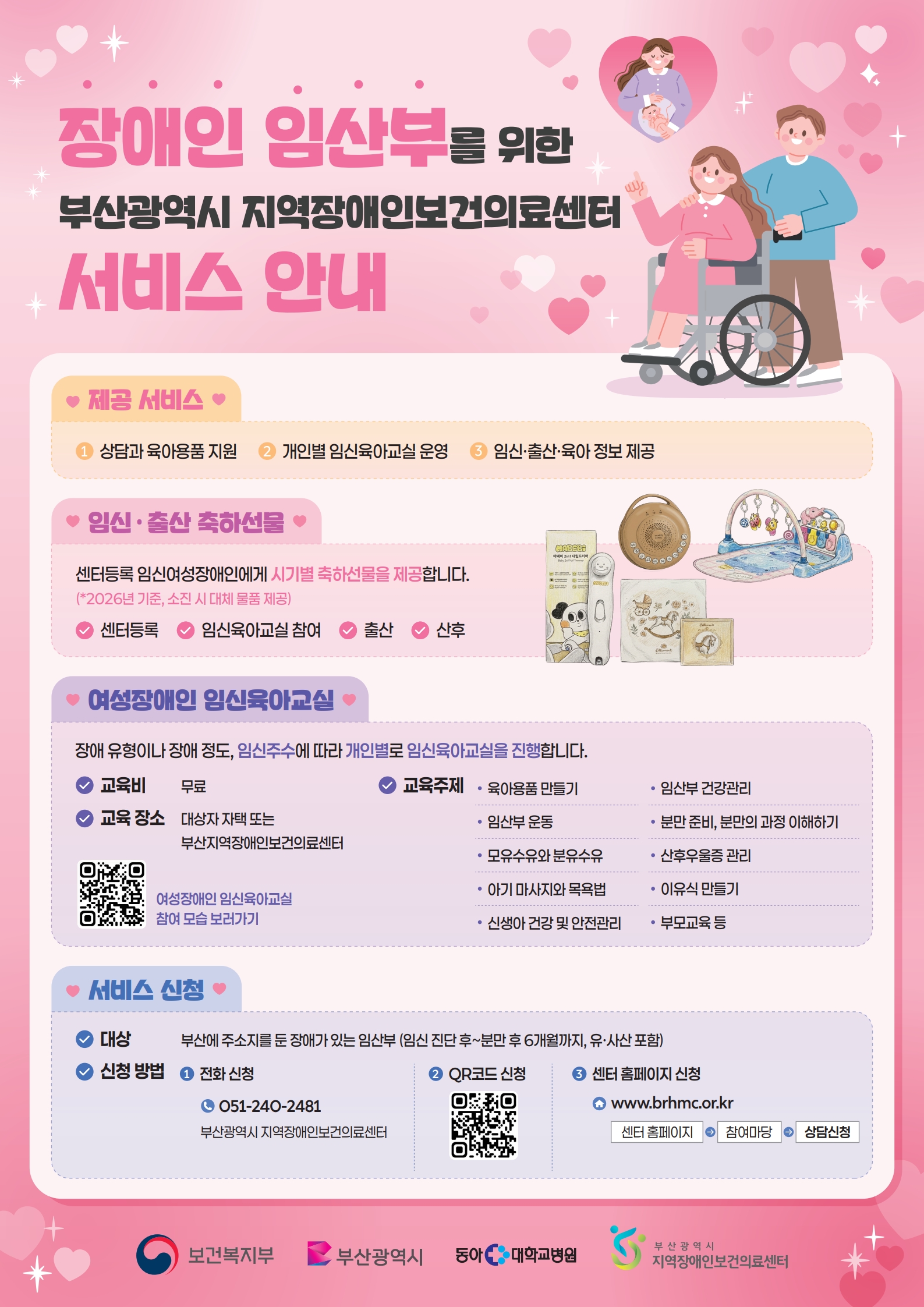 - - 대상: 부산에 주소지를 둔 임신 진단 후부터 분만 후 6개월 이내의 장애인 여성